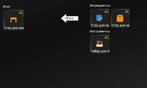 Для сборки верстака нужен набор деталей (на скриншоте выше - коробка). Его можно купить в магазине или скрафтить самостоятельно из других составляющих